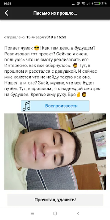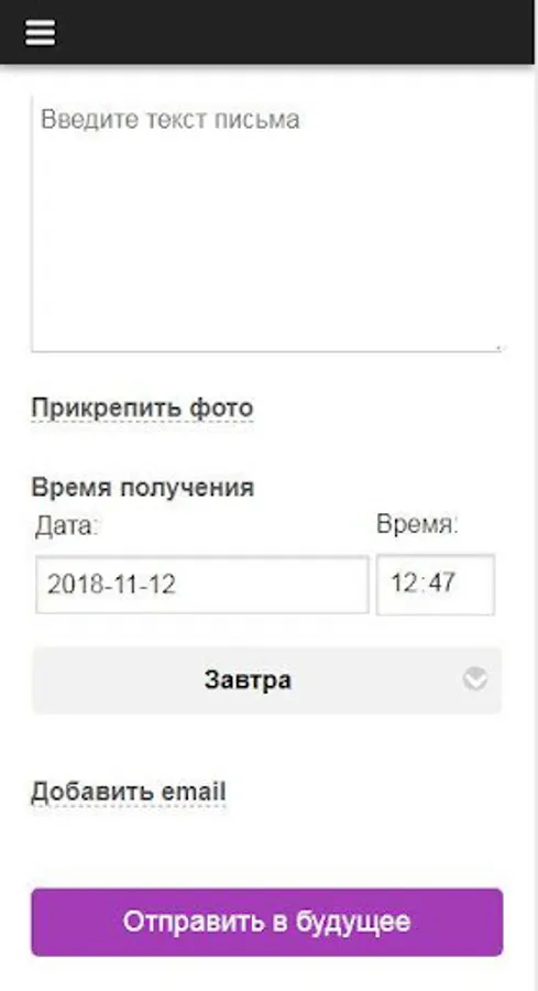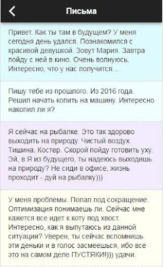 Write yourself a letter to the future. Tell us about what you are doing now, what you dream about, what you want to buy. And in the future you will receive your letter. If you're sad, a good letter will cheer you up. A bad letter will show that all troubles go away.
