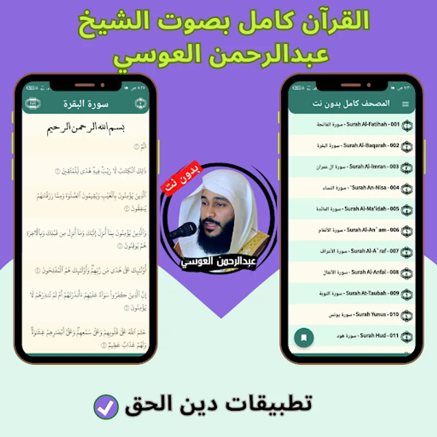 The application of the Holy Qur’an with the voice of Abdul Rahman Al-Awsi without the net allows you to hear all the surahs of the Holy Qur’an through your mobile phone or tablet with ease and ease through one program that contains all the surahs of the Holy Qur’an. And you can download the application of the Noble Qur’an with the voice of Abdul Rahman Al-Awsi with ease, so that you can enjoy reciting the Noble Qur’an with the voice of Sheikh Abdul Rahman Al-Awsi wherever you want and without the Internet.