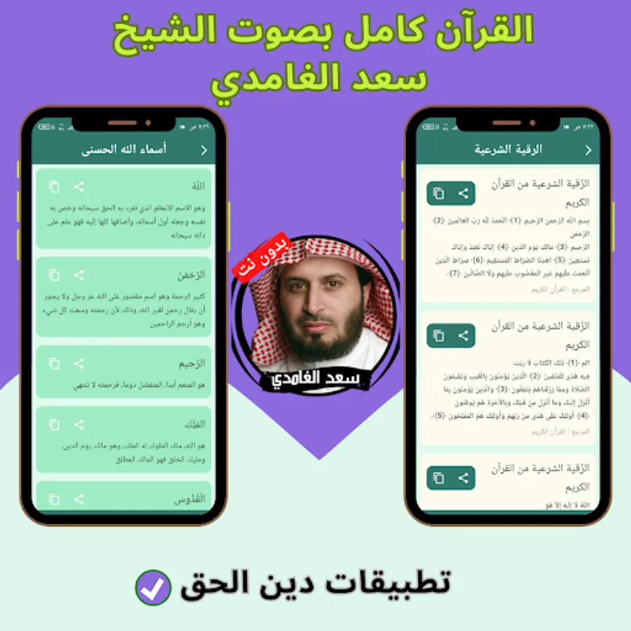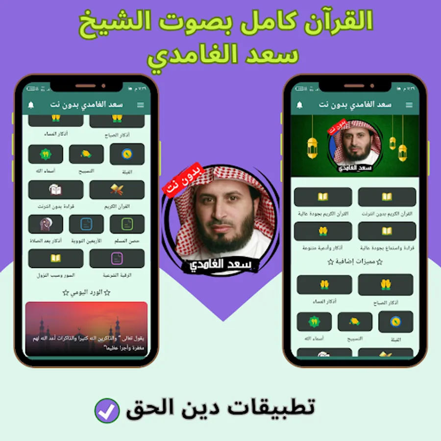 Definition of the application of the Noble Qur’an with the voice of the reciter, Sheikh Saad Al-Ghamdi, without the Internet