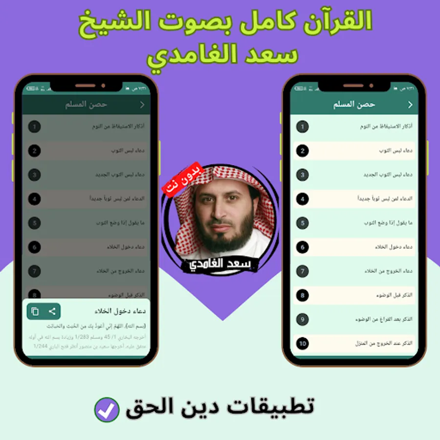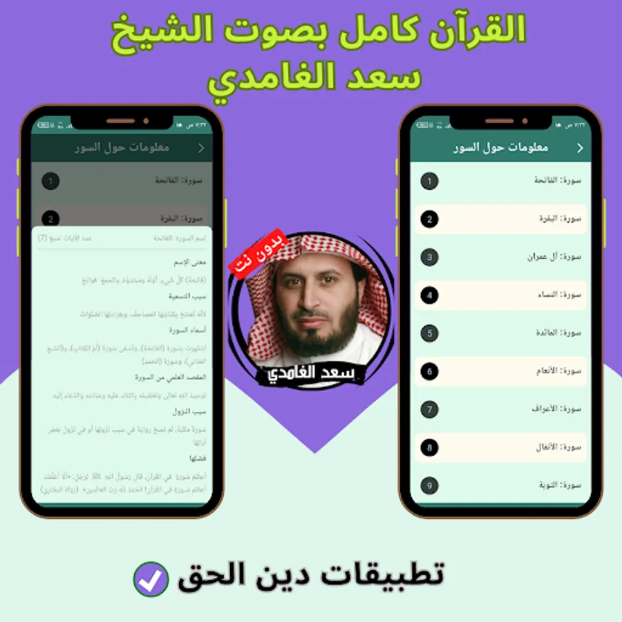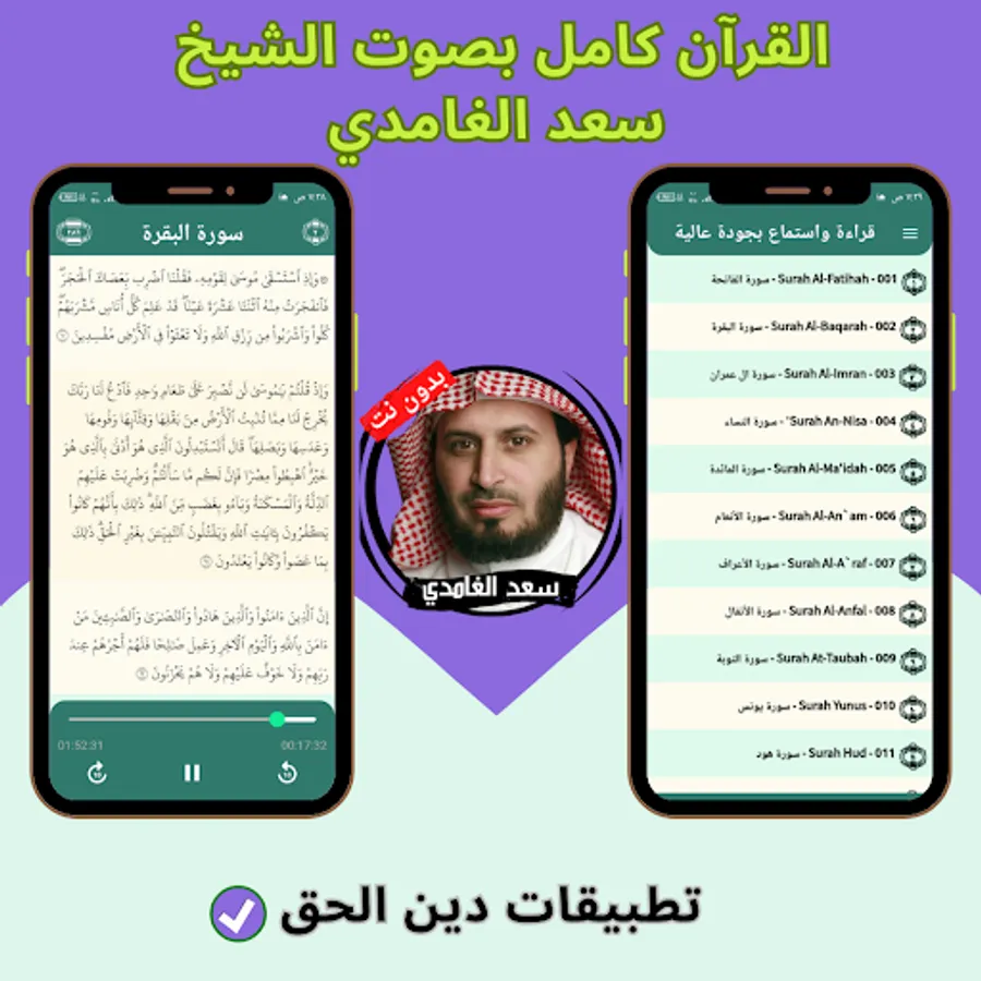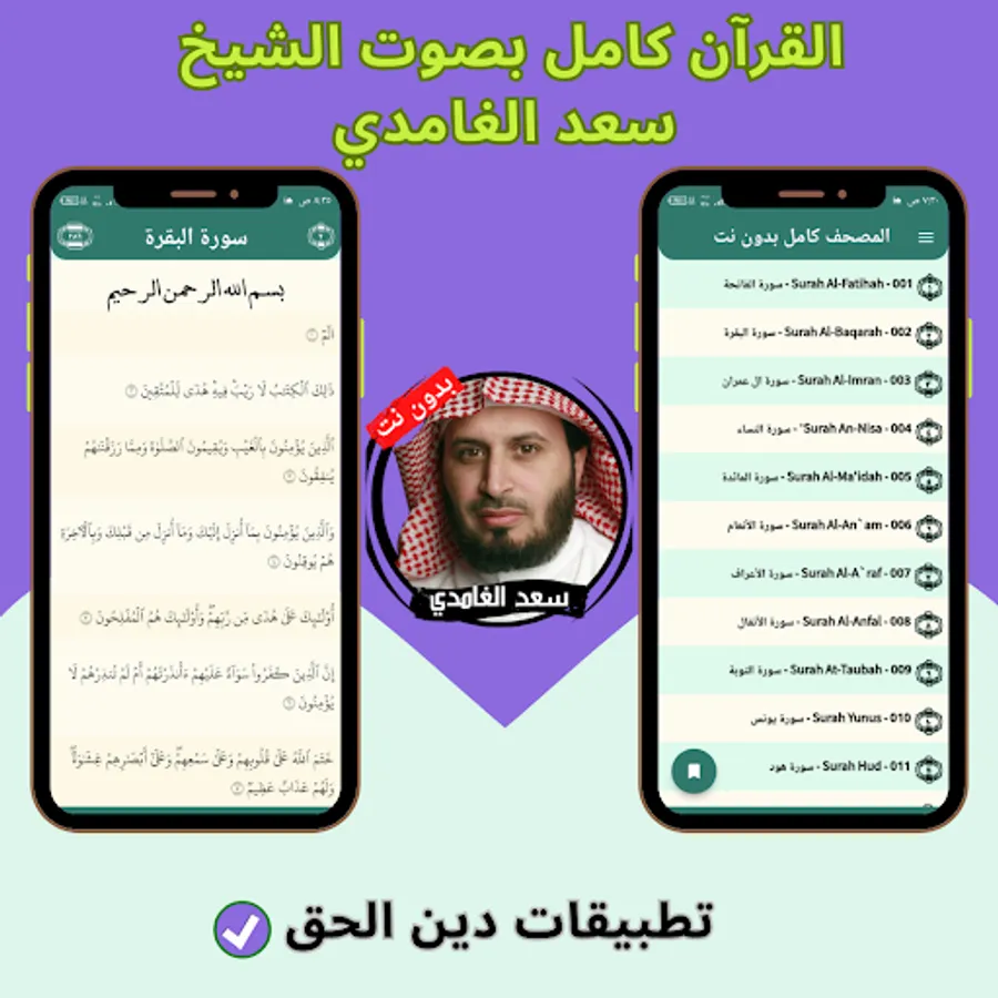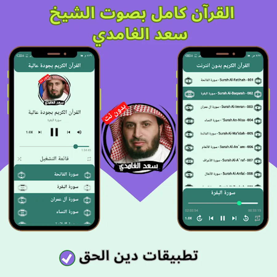 The application of the Noble Qur’an with the voice of Saad Al-Ghamdi without the net allows you to hear all the surahs of the Holy Qur’an through your mobile phone or tablet with ease and ease through one program that contains all the surahs of the Holy Qur’an. And the Holy Qur’an application can be downloaded with the voice of Saad Al-Ghamdi with ease, so that you can enjoy reciting the Noble Qur’an with the voice of Sheikh Saad Al-Ghamdi wherever you want and without the Internet.