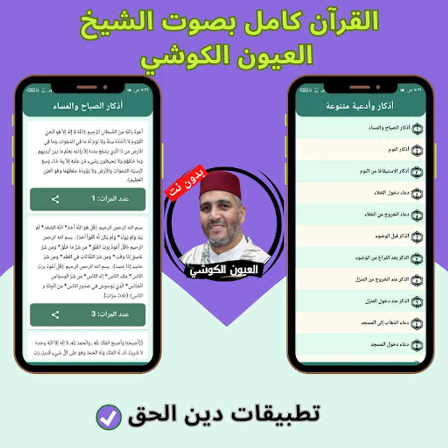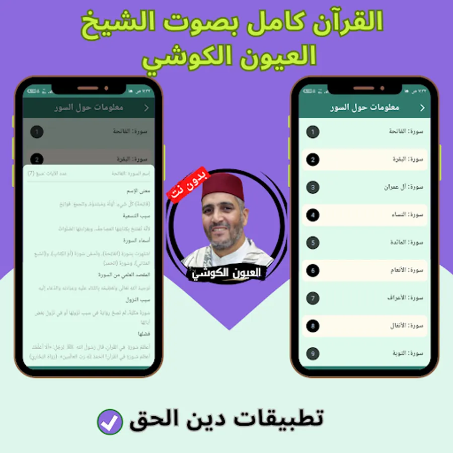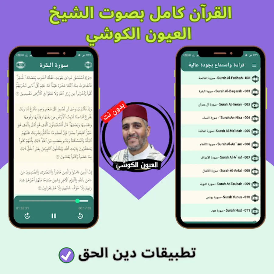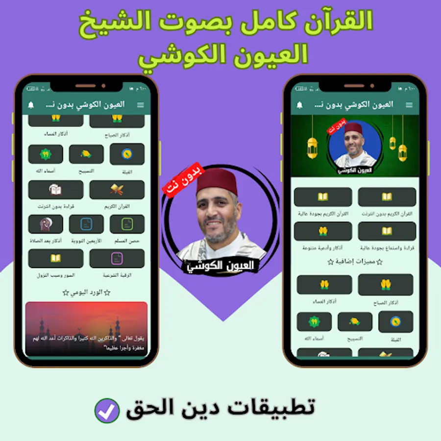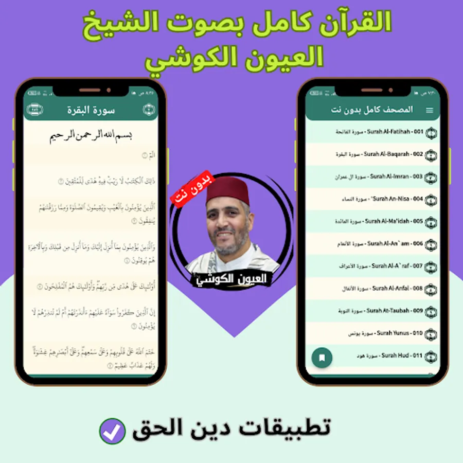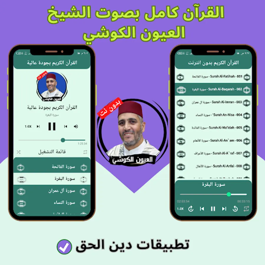The application of the Noble Qur’an with the voice of Al-Ayoun Al-Kushi without the net allows you to hear all the surahs of the Holy Qur’an through your mobile phone or tablet with ease and ease through one program that contains all the surahs of the Holy Qur’an. And you can download the application of the Noble Qur’an with the voice of Al-Ayoun Al-Kushi with ease, so that you can enjoy reciting the Noble Qur’an with the voice of Sheikh Al-Ayoun Al-Kushi wherever you want and without the Internet.