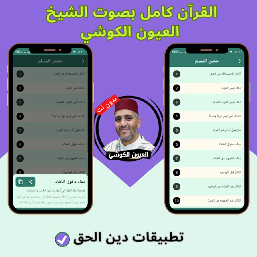 Now you can use the application with ease and listen to the surahs of the Noble Qur’an with the voice of Sheikh Al-Ayoun Al-Kushi, and live a wonderful state of faith in which you delve deeper into the meanings of the Noble Qur’an. Enjoying the voice of Sheikh Al-Ayoun Al-Kushi, who transports you to another world with his distinctive voice.