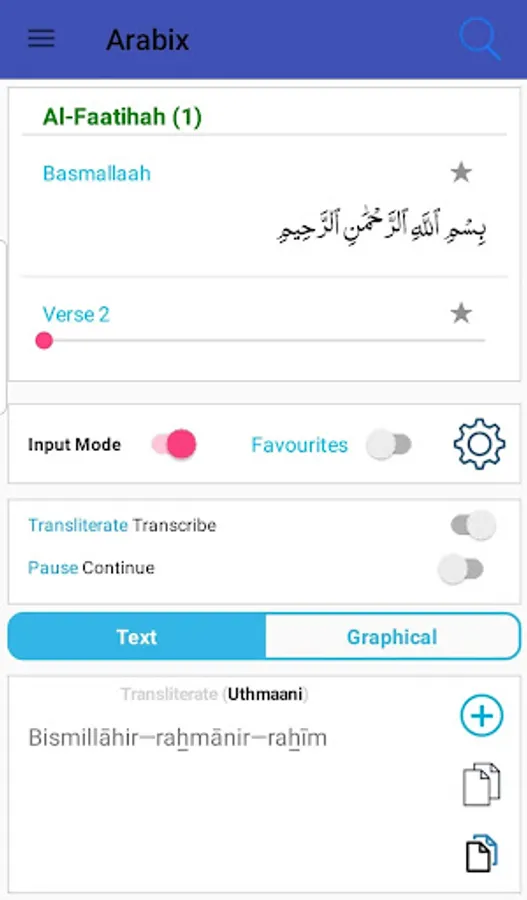 2. Select Qur'aanic Text, Names and common Arabic Phrases from predefined lists