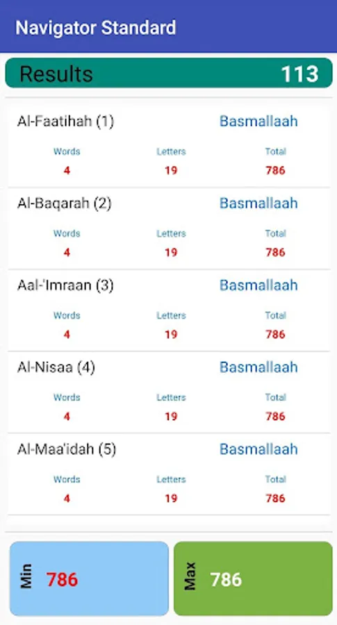 Uses of the Abjad System include assigning numerical values to Arabic words for purposes of numerology. The common Islamic phrase بسم الله الرحمن الرحيم bismillāh al-Raḥmān al-Raḥīm ('In the name of Allah, the most merciful, the most compassionate') has a numeric value of 786 (from a letter-by-letter cumulative value of 2+60+40+1+30+30+5+1+30+200+8+40+50+1+30+200+8+10+40).