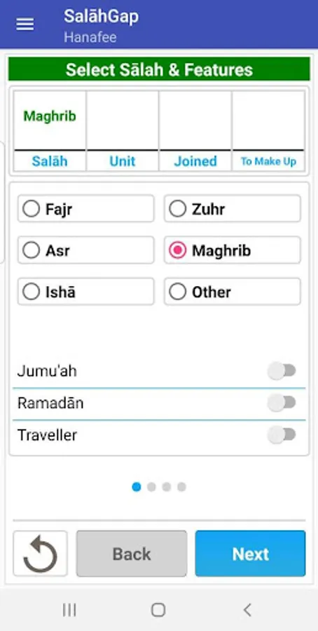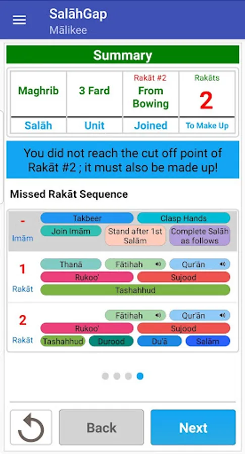 The SalāhGap application is a Unique and Intuitive Tool; it provides the User with clear Instructions on how to make up missed Raka'ahs in a Simple and Aesthetically Pleasing manner.