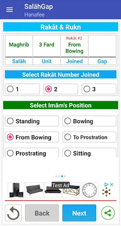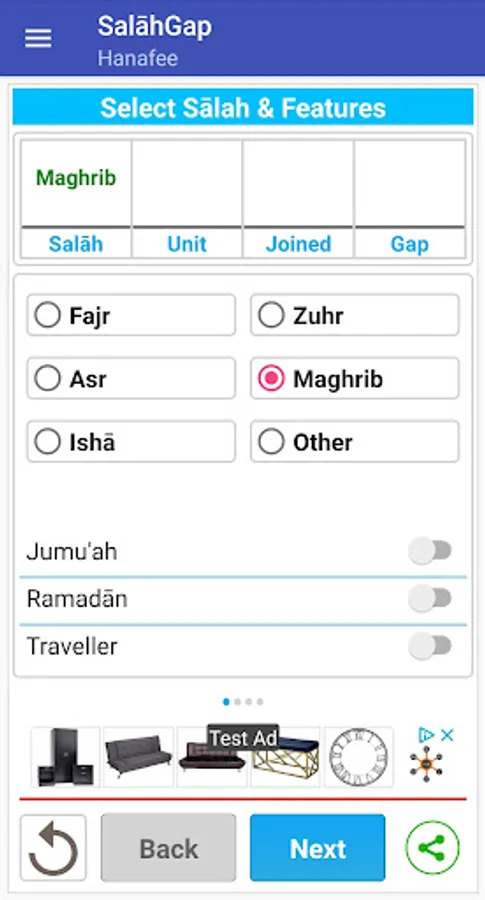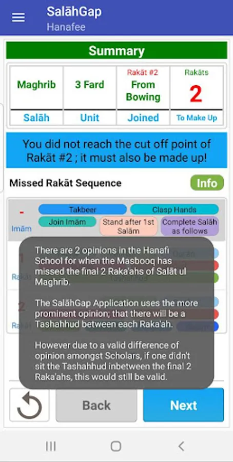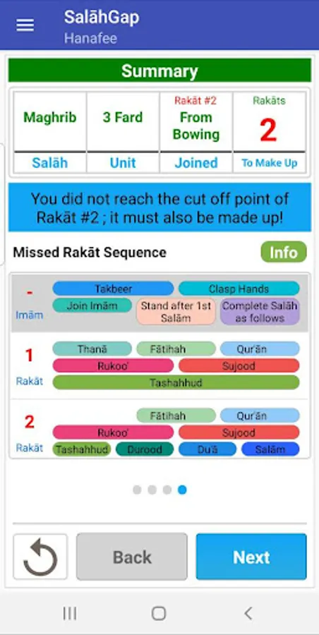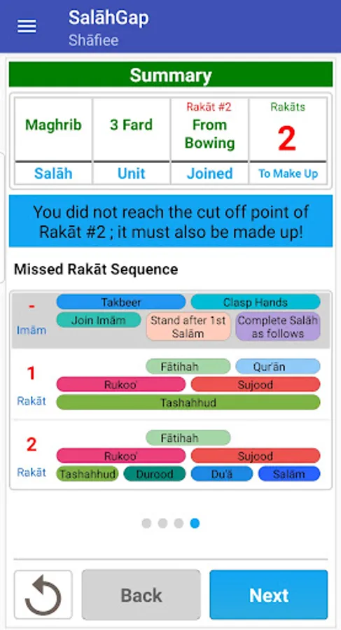 The SalāhGap application is a Unique and Intuitive Tool; it provides the User with clear Instructions on how to make up missed Raka'ahs in a Simple and Aesthetically Pleasing manner.