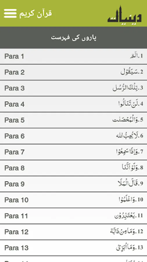 This is an app by idare Deeniyat, which enables reciting quran wherever you are.It is an easy-to-use, attractive app that has been developed under careful supervision of the Deeniyat organization. We have tried to provide a clear and easily readable Arabic font. The User Guide and prompt messages guide the user at every step for easy and effective use of the app. Recitation can be performed using the Juz/Para index or the Surah index. Surahs can be bookmarked within the index enabling quick access from the favorite list. Similarly, pages from the Quraan can also be bookmarked facilitating prompt access later on from the bookmarks list. Moreover, users can simply resume reading from where they left off or directly go to a specific page by entering the page number. Users can select among different reading modes such as the Gallery Effect or Page Effect. The Gallery Effect allows the reader to turn pages by swiping on the screen. This mode accompanies zoom in/out feature. The Page Effect provides the reader with real page flipping effects. Adding bookmarks and changing reading modes are also accessible through the Menu/Volume keys. Finally, the app also provides options to share it with friends, family and colleagues so they too can benefit from this app. One can access the Deeniyat organization website and other apps developed by Deeniyat organization.