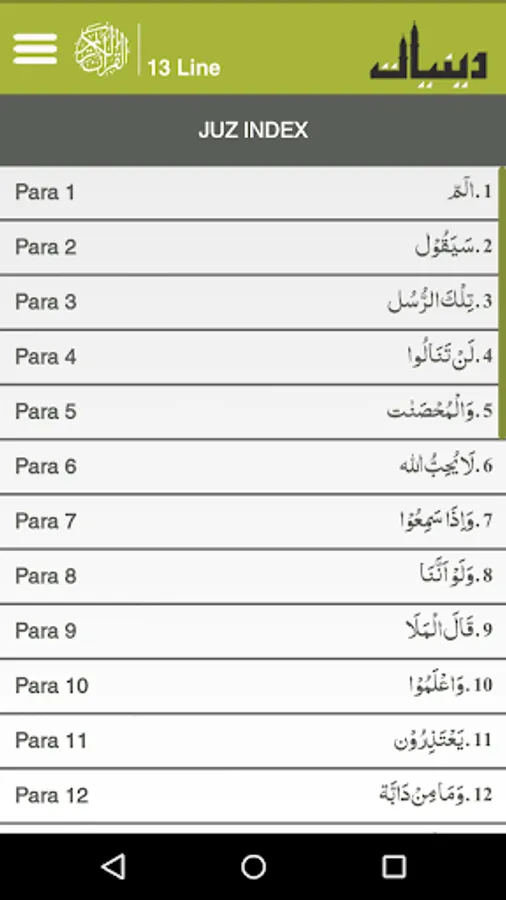 This is an app by idare Deeniyat, which enables reciting quran wherever you are.It is an easy-to-use, attractive app that has been developed under careful supervision of the Deeniyat organization. We have tried to provide a clear and easily readable Arabic font. The User Guide and prompt messages guide the user at every step for easy and effective use of the app. Recitation can be performed using the Juz/Para index or the Surah index. Surahs can be bookmarked within the index enabling quick access from the favorite list. Similarly, pages from the Quraan can also be bookmarked facilitating prompt access later on from the bookmarks list. Moreover, users can simply resume reading from where they left off or directly go to a specific page by entering the page number. Users can select among different reading modes such as the Gallery Effect or Page Effect. The Gallery Effect allows the reader to turn pages by swiping on the screen. This mode accompanies zoom in/out feature. The Page Effect provides the reader with real page flipping effects. Adding bookmarks and changing reading modes are also accessible through the Menu/Volume keys. Finally, the app also provides options to share it with friends, family and colleagues so they too can benefit from this app. One can access the Deeniyat organization website and other apps developed by Deeniyat organization.
