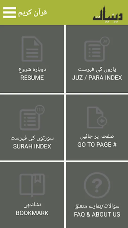 This is an app by idare Deeniyat, which enables reciting quran wherever you are.It is an easy-to-use, attractive app that has been developed under careful supervision of the Deeniyat organization. We have tried to provide a clear and easily readable Arabic font. The User Guide and prompt messages guide the user at every step for easy and effective use of the app. Recitation can be performed using the Juz/Para index or the Surah index. Surahs can be bookmarked within the index enabling quick access from the favorite list. Similarly, pages from the Quraan can also be bookmarked facilitating prompt access later on from the bookmarks list. Moreover, users can simply resume reading from where they left off or directly go to a specific page by entering the page number. Users can select among different reading modes such as the Gallery Effect or Page Effect. The Gallery Effect allows the reader to turn pages by swiping on the screen. This mode accompanies zoom in/out feature. The Page Effect provides the reader with real page flipping effects. Adding bookmarks and changing reading modes are also accessible through the Menu/Volume keys. Finally, the app also provides options to share it with friends, family and colleagues so they too can benefit from this app. One can access the Deeniyat organization website and other apps developed by Deeniyat organization.