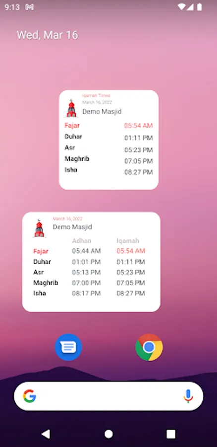Instantly access your local Masjid Iqamah times on your smartphone home screen, without even opening the App.