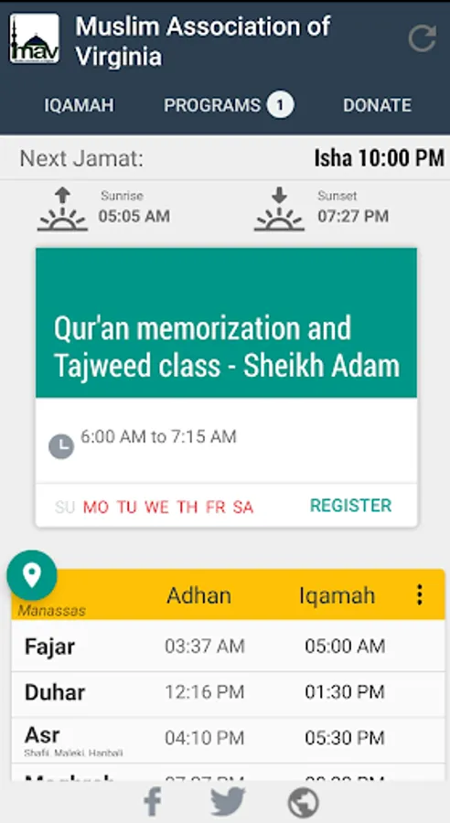 The mission of the Muslim Association of Virginia (MAV) is to establish and maintain a vibrant community based on the Qur’an and Sunnah (teachings of Prophet Muhammad - may peace and blessings be upon him) that is pleasing to Allah, through programs that support the religious, social and educational advancement of Muslims we serve. It also includes establishing and strengthening relationships with other Muslim and non-Muslim organizations that share our values