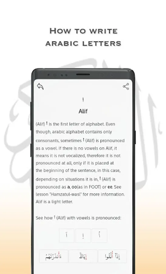 Learn the Arabic alphabet and learn how to write each letter one by one. Rules of prolonging vowels while reading, rules of stopping, and what are stop signs.