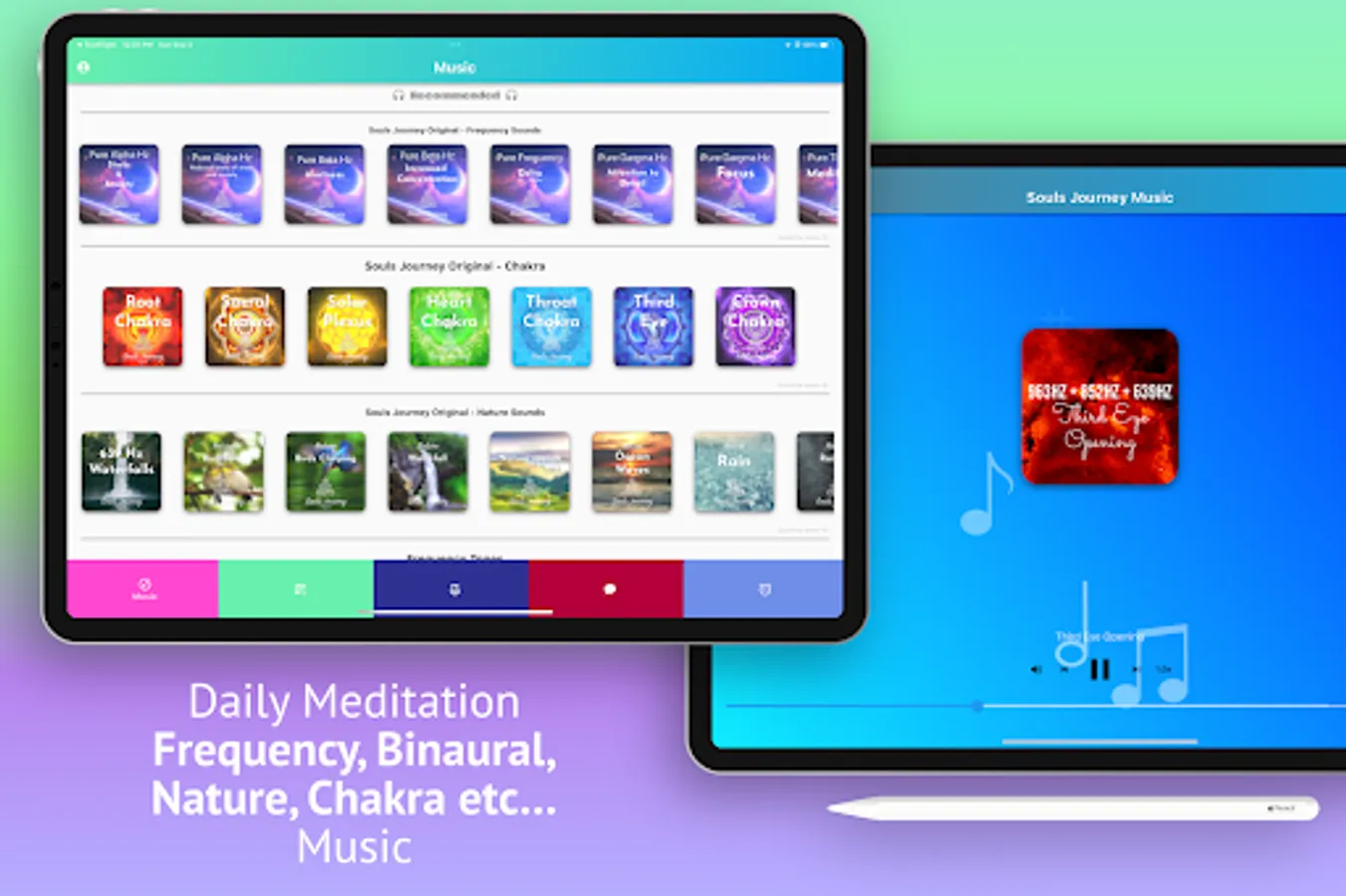 Everything in existence is vibrating at its own frequency, us humans are the same. By stimulating the right and left side of your brain you’re able to use these frequencies for various things. You can shift into the reality that you want, you can heal certain parts that may cause discomfort. This spiritual energy work translates into the physical, your consistency will determine your future. Includes meditation music, a guide to spirituality and Ayurvedic practices, a whole new interface for daily affirmations, and an alarm for you to wake up feeling refreshed and positive to tackle the day.