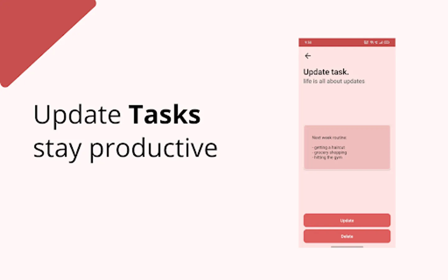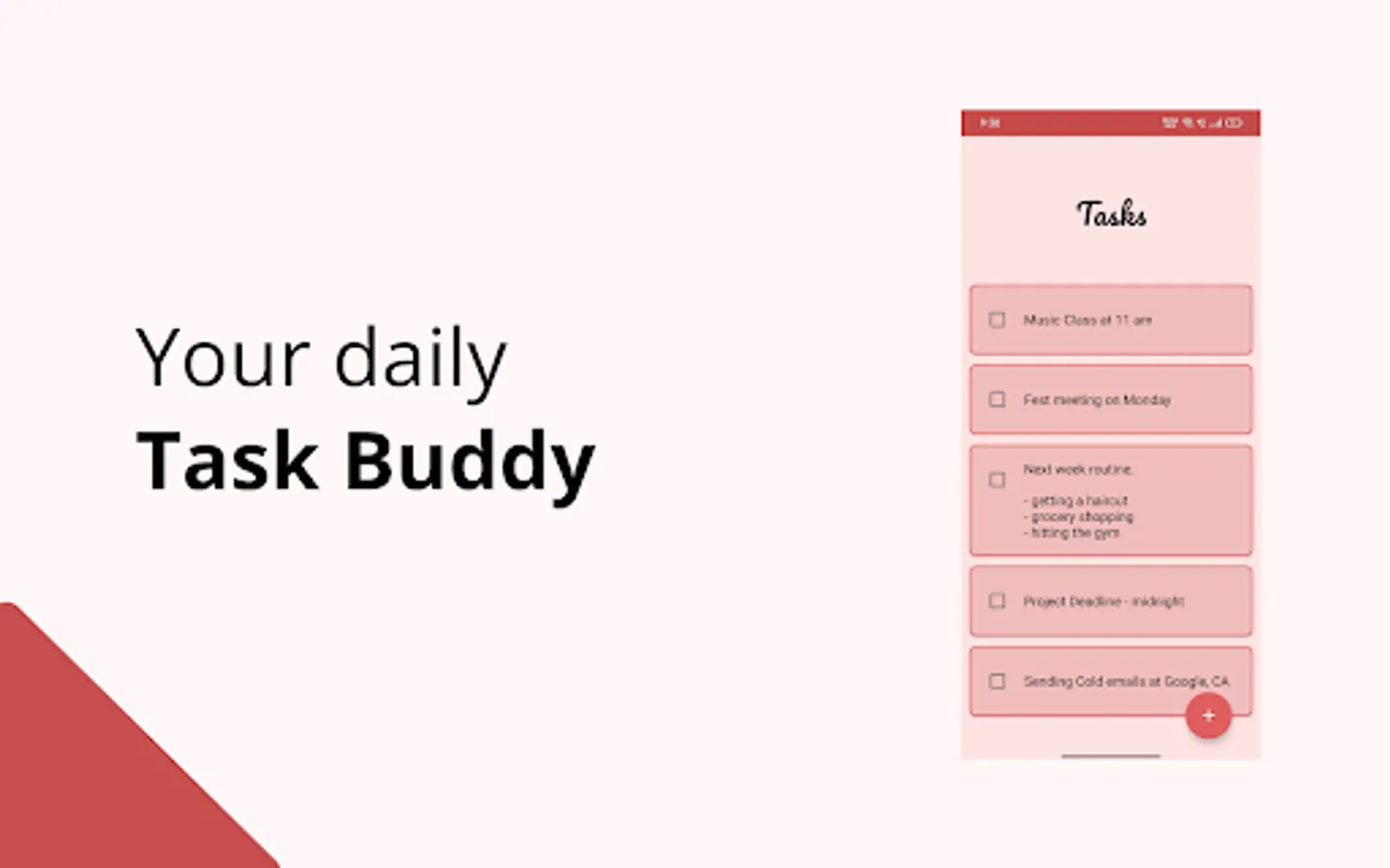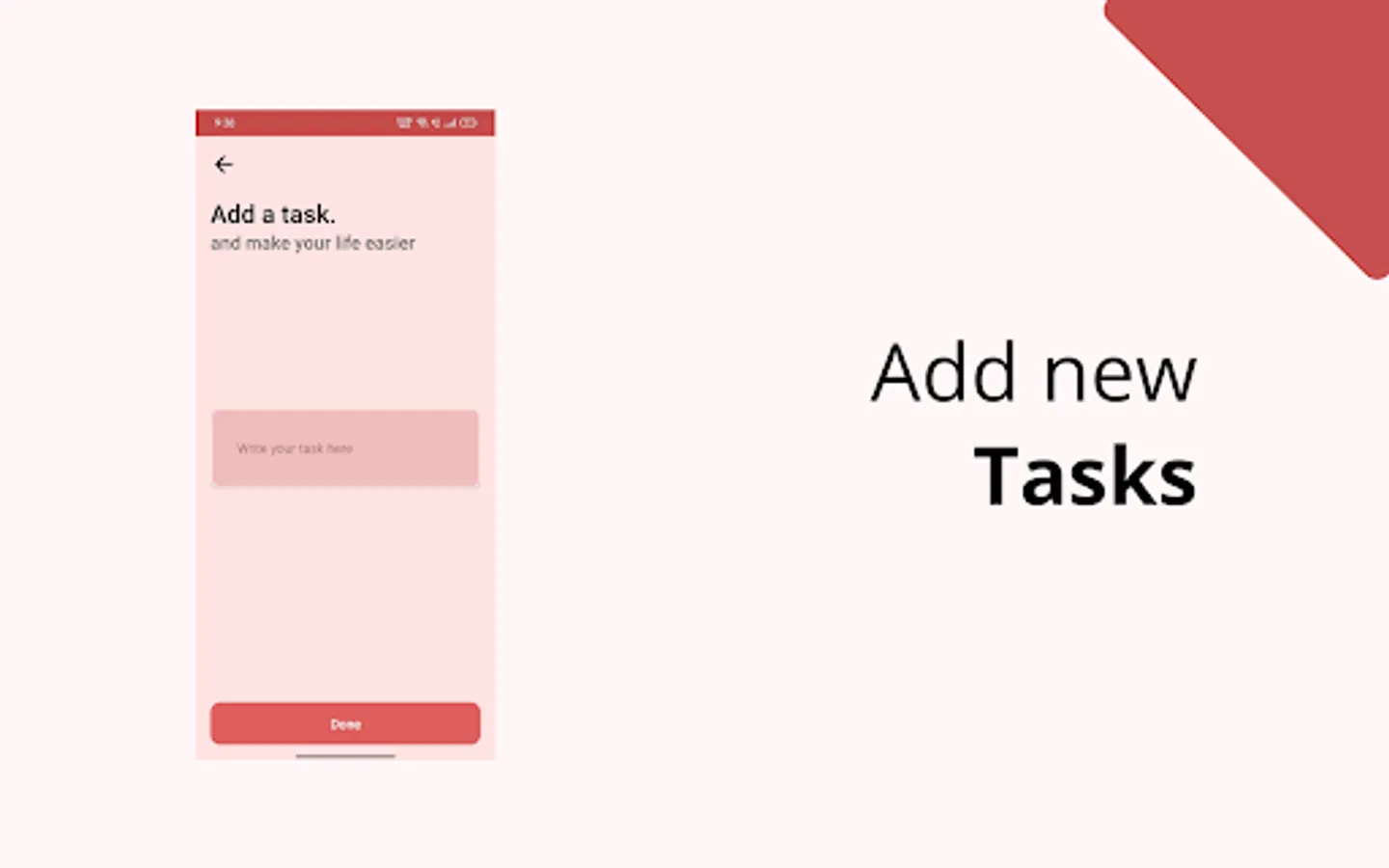 Tasks is a to-do list task app to help you stay organised and productive all the day. Add new tasks on-the-go, update as per your needs and delete after you finish them up.
