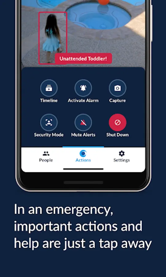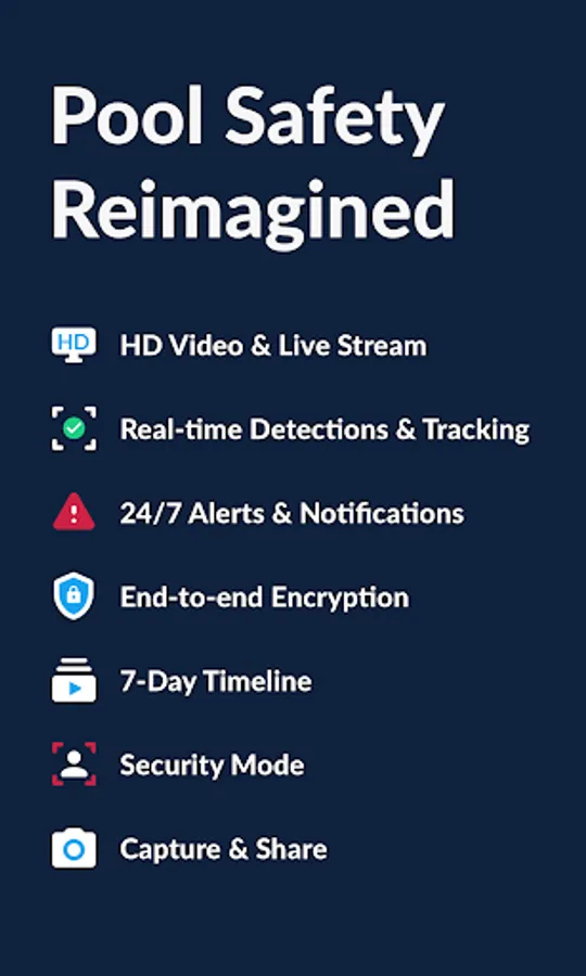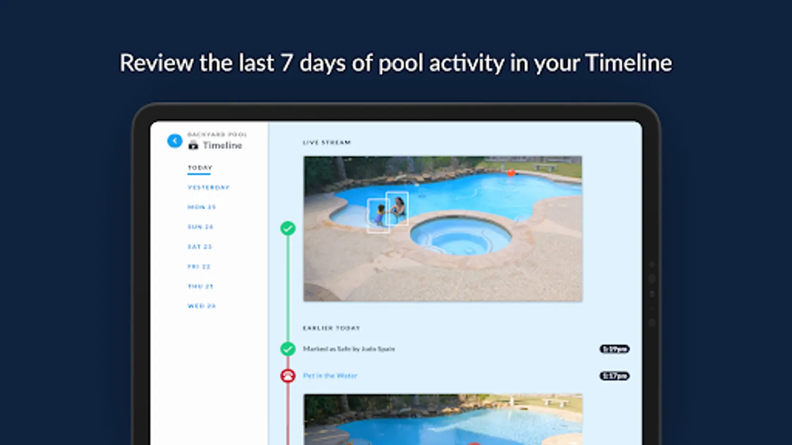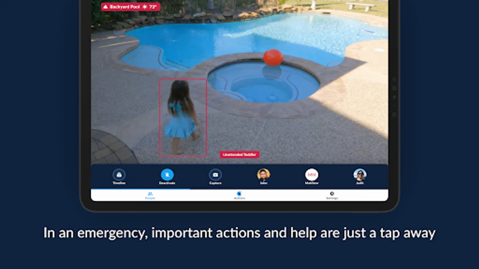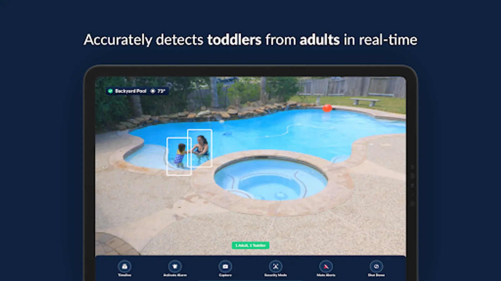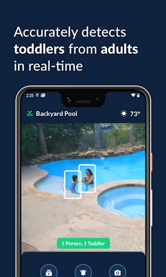 PoolScout uses cutting-edge artificial intelligence (AI) to distinguish toddlers from other people. It analyzes your pool’s Live Stream in real-time, recognizing unsafe scenarios and raising reliable alerts.