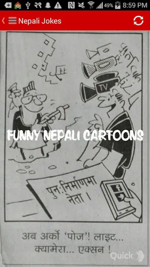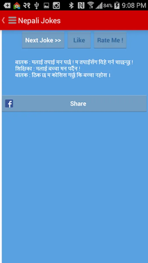 This is the one stop app for Nepali Jokes. You can download once and enjoy this app offline anytime anywhere. It has more than 5000 jokes that are selected manually for you to enjoy.