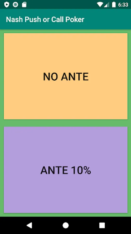 Nash Push or Call Poker is based on the Nash tables which allow you to play optimally when there are only two players in the game.