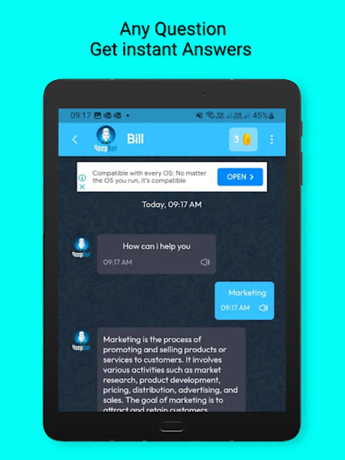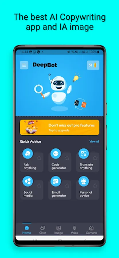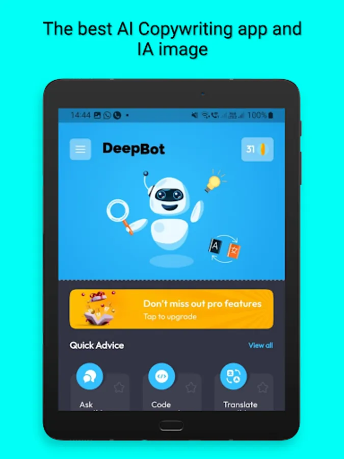 Experience the power of having an AI Chat bot powered by OpenAI’s DeepBot in your pocket 24/7. Download this AI bot chat and have an AI companion for questions, and tasks.