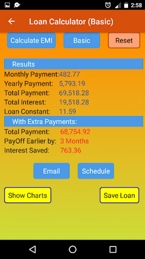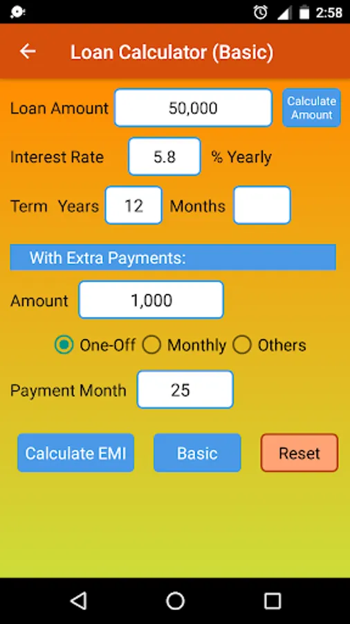 Loan Calculator / EMI Calculator helps you to calculate monthly/yearly payment, EMI payments, interest or loan amount. It allows to create payment schedule and to plan advanced repayment.