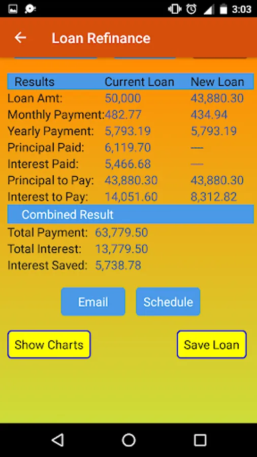 Loan Amortization Chart/Repayment Schedule can be emailed with attachment as Excel/CSV file.