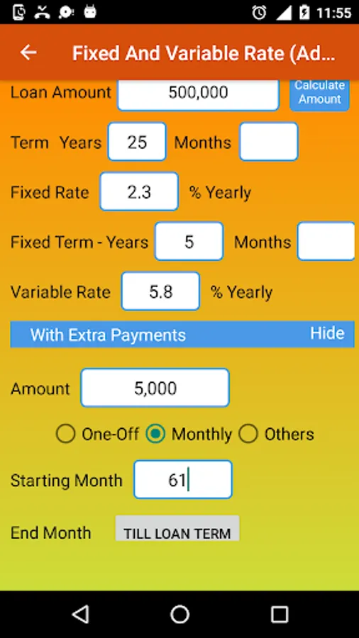 -Fixed and Variable Rate with extra/partial payment Calculations