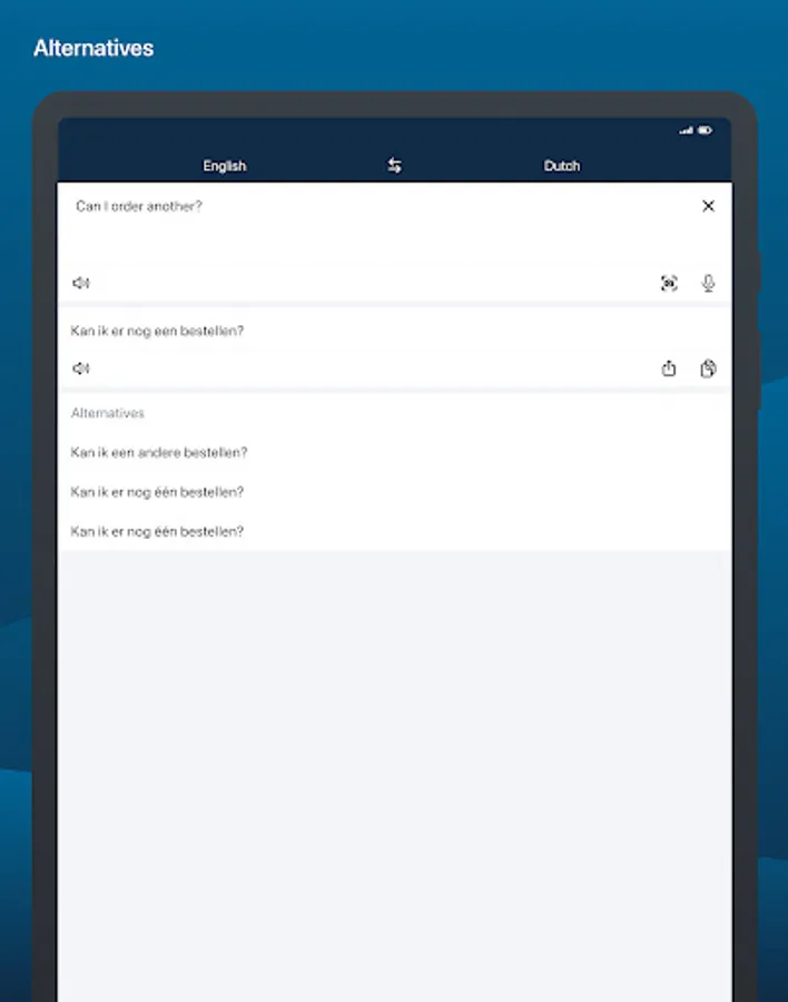 * Dictionary: Use the dictionary to learn more about the words you translate, such as how to use them in different contexts (11 language pairs)