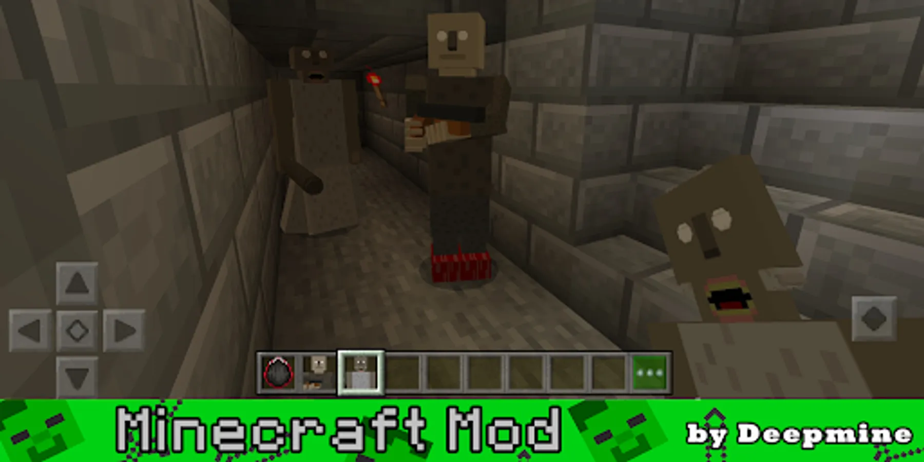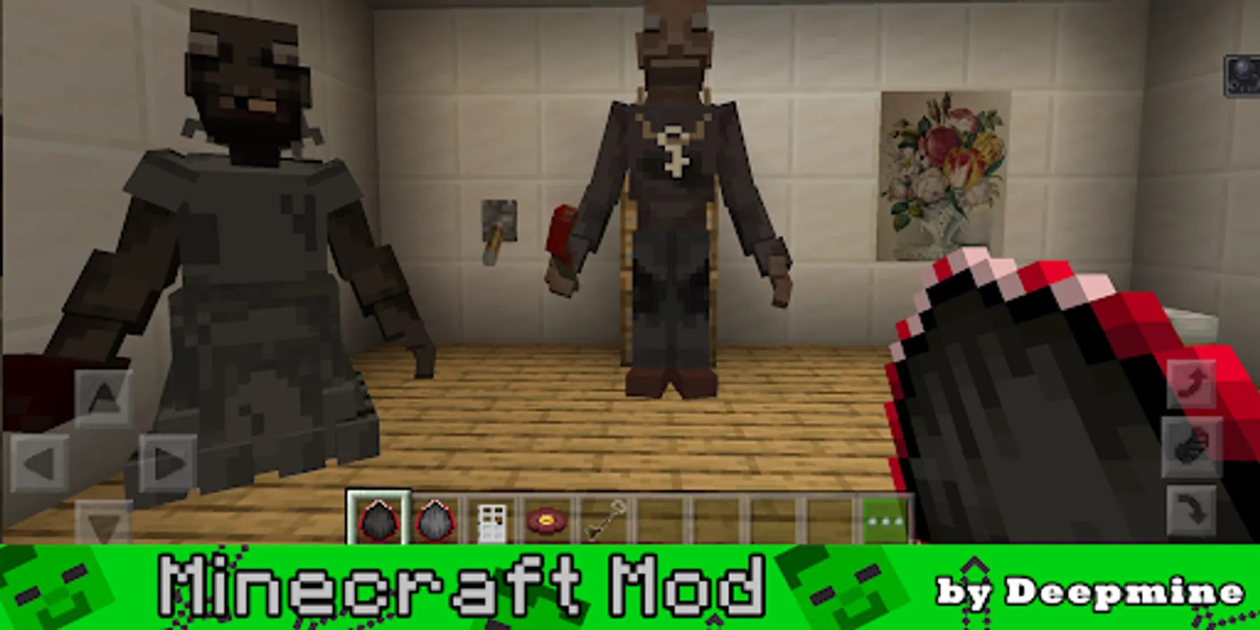 Thanks to our granny mods application and greni map, you can easily download the selected addon for the scary game and add it to the blocky world of Minecraft and get horror. Using this addon for hide and seek and skins Grandma and grandpa you will have the opportunity to meet not only grani but also such a character as grandpa and have a lot of fun where there will be the most horror game.