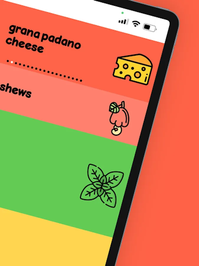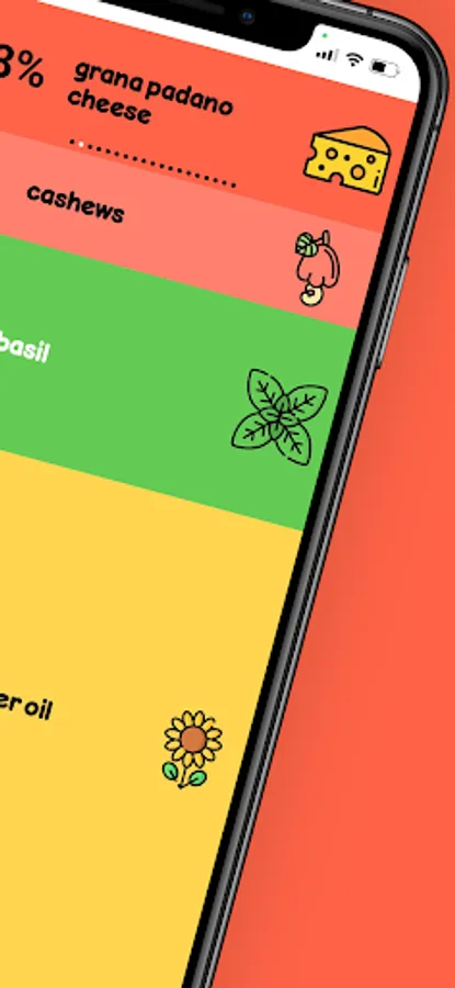-main ingredient backgrounds are shown as the most dominant color of their respective icons