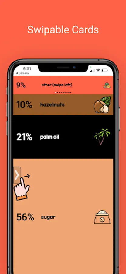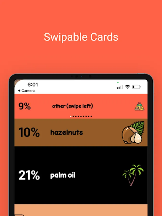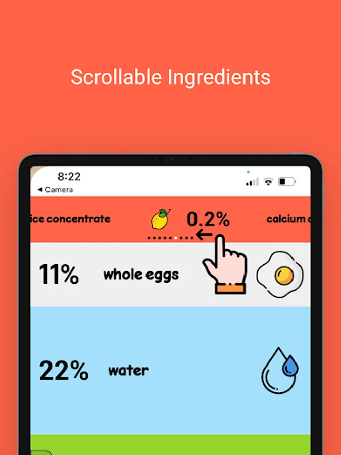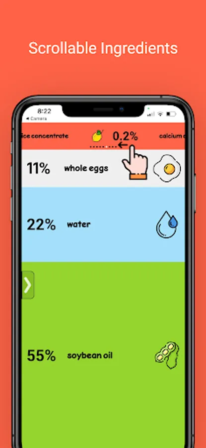 -ingredients making up more than 10% of a scanned item are categorized as main ingredients and displayed with a corresponding icon if one is available