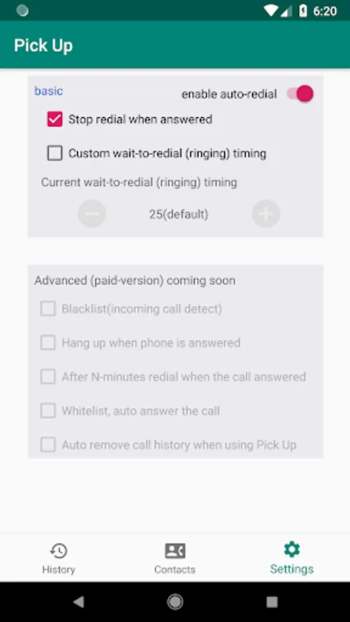 Call history is currently unavailable due to Google’s privacy policy, and will be updated after Google’s approval.
