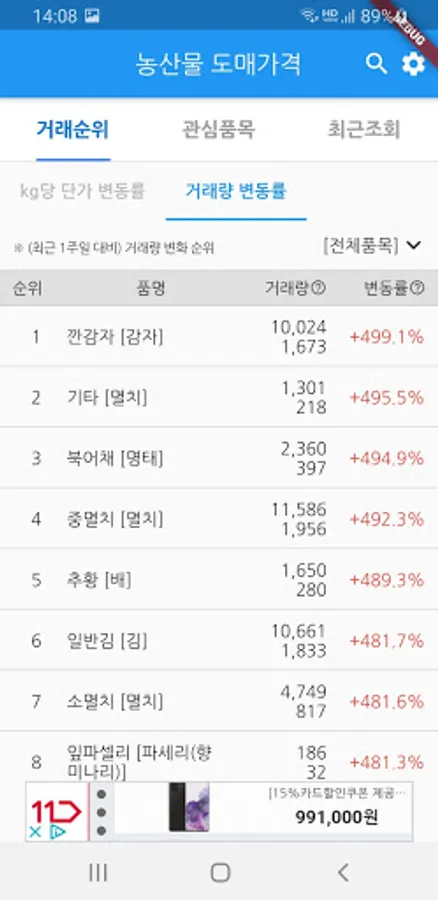 -The ranking is based on the order in which the change in the transaction is large compared to the last week.