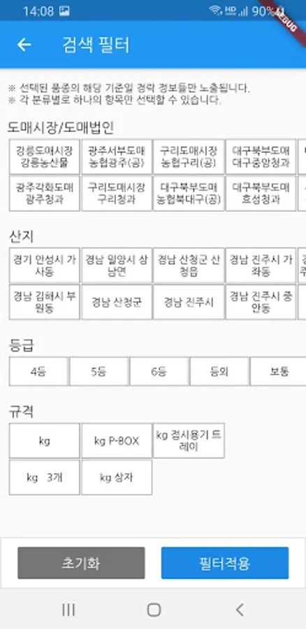 -By selecting the desired wholesale market/wholesale corporation, production area, grade, standard, etc., you can check the auction summary information and the meridian price that meet the conditions.