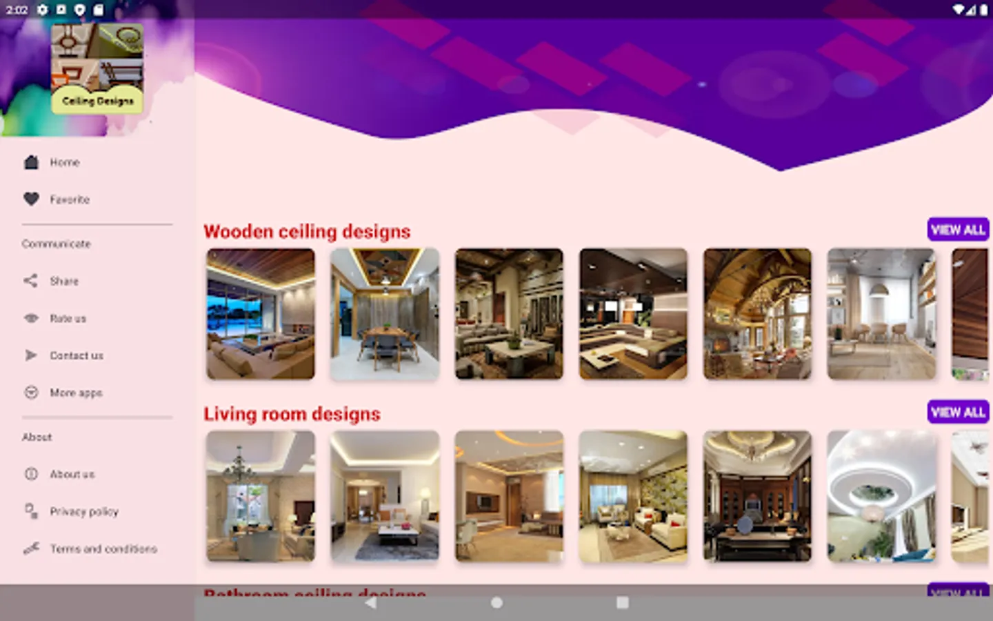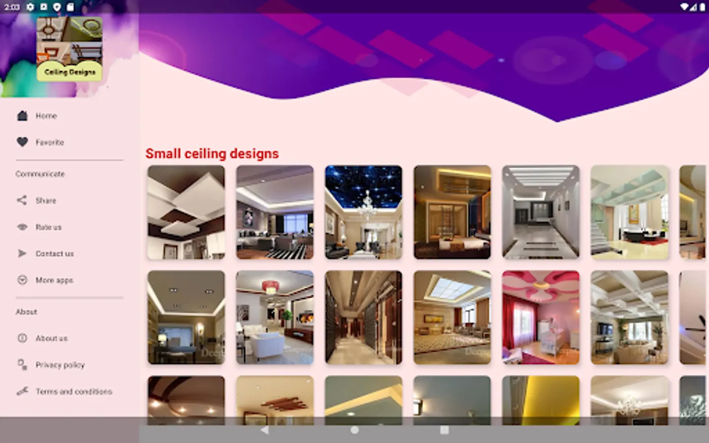 This application is a collection of ceiling designs with different shapes and varieties that you can use as a reference point to make the room look more attractive. Interior space can be maximized by creating a connection between different wall and ceiling conditions