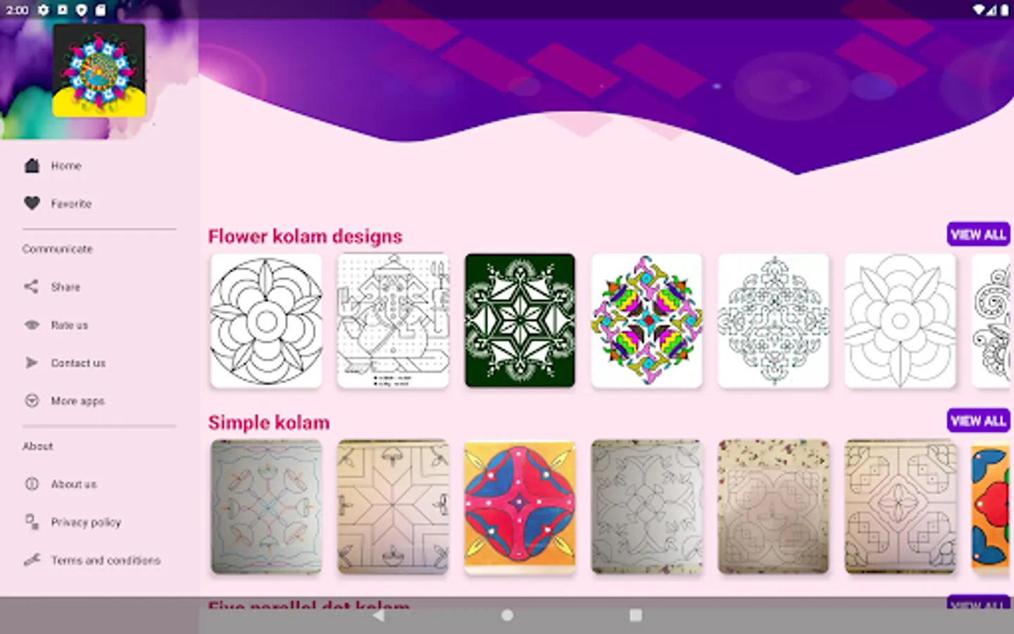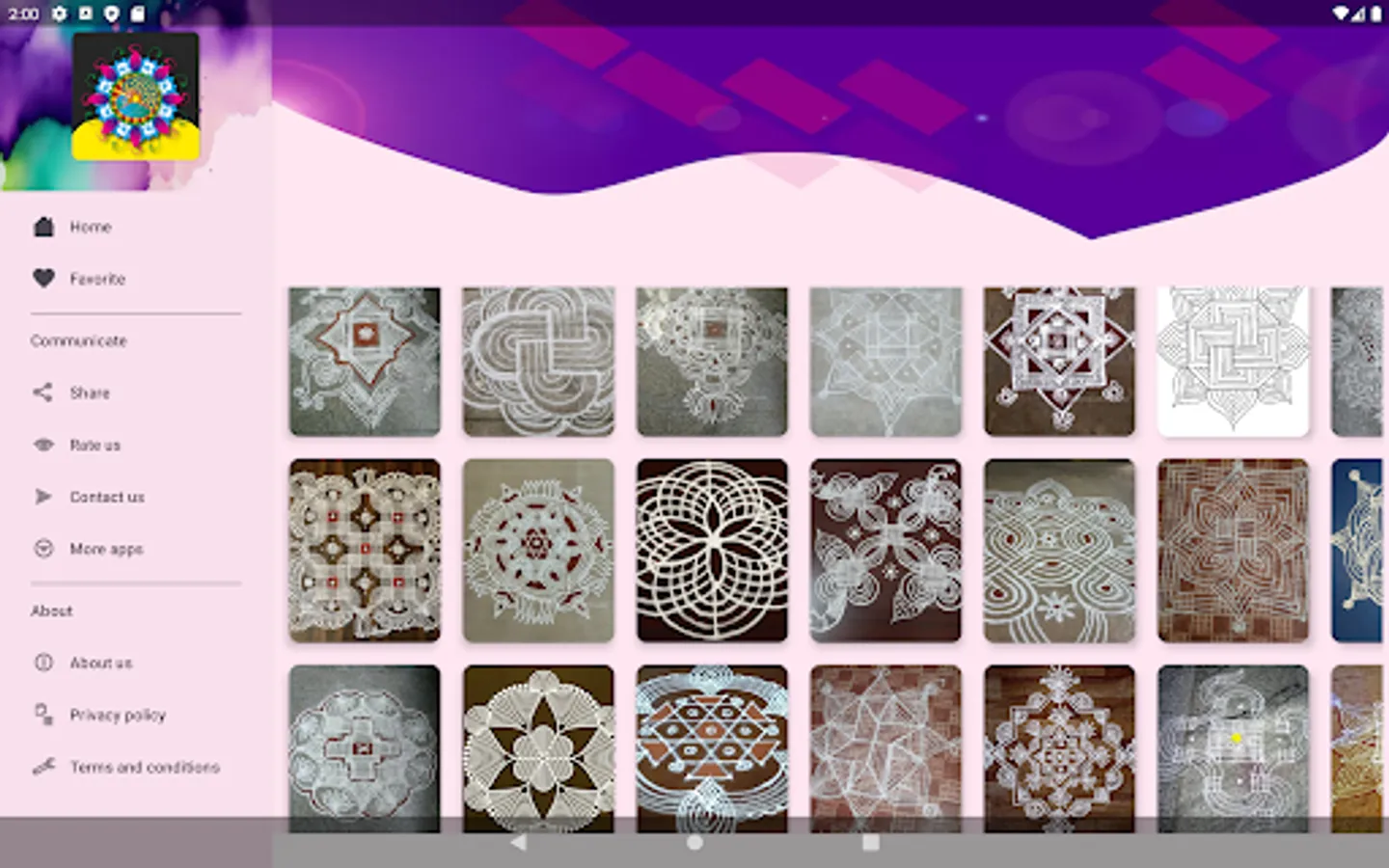 Amazing kolam, rangoli designs for ladies who wish they want to be unique. This app contains kolam, rangoli designs from simple to fantasy where you can choose for various occasion and be a trendy lady.
