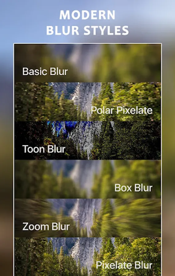 This photo blur editor is the alternative of your any blur camera apps. If you have an image taken with no blur camera or blur effects no problem. You can now put blur background photo effect according to your demand with so many blurring styles. Currently, This Photo blur editor has some additional blurring effects such as basic gaussian blur, Box blur, point blur, pixelate blur, Zoom blur, motion blur and Cartoon effect blur. We will be adding more blurring effects over time.