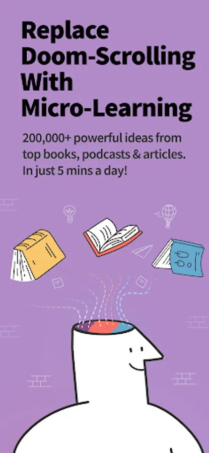 Learn something new in just 5 minutes, with unlimited daily access to 200,000+ powerful ideas from top books, articles, podcasts, videos and more, in just 4 easy steps: