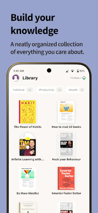 Choose a few topics of interest and directions (like increasing productivity, building better habits or earning more money) and then just use Deepstash at your leisure. As you read and save ideas, we learn what you like and find the best stories, articles, books, podcasts and other top content to show you every day. You don’t even have to work for it.