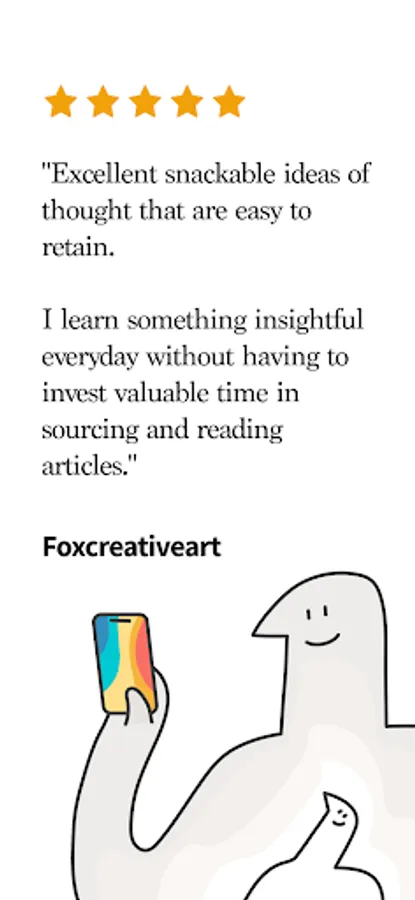 "It helped me get off social media. So excellent to learn something, and I feel like the time I spent was valuable. I also spend about 10 minutes every morning picking a topic and enjoying it. Great app, well-done Kudos" - Ron Ronald