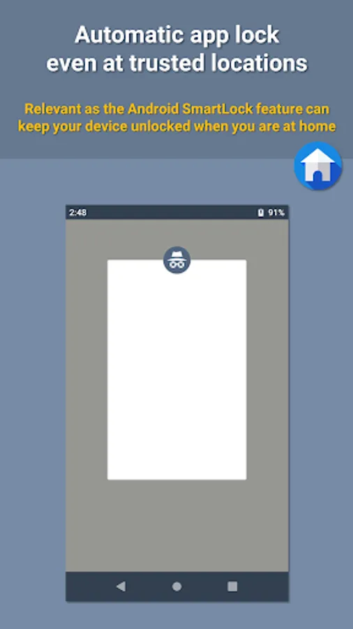 ▪ The app automatically locks itself even when you are on a trusted location (for instance, you have the Android's Smart Lock feature activated at home and therefore when at home your device is always unlocked and accessible to anyone)