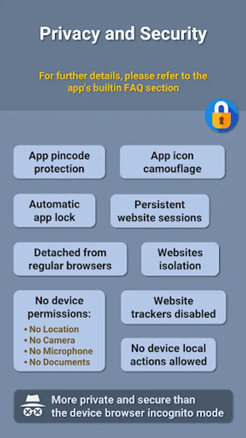 ▪ The app runs without any special permission, meaning porn websites have no access whatsoever to your location, camera, microphone, documents