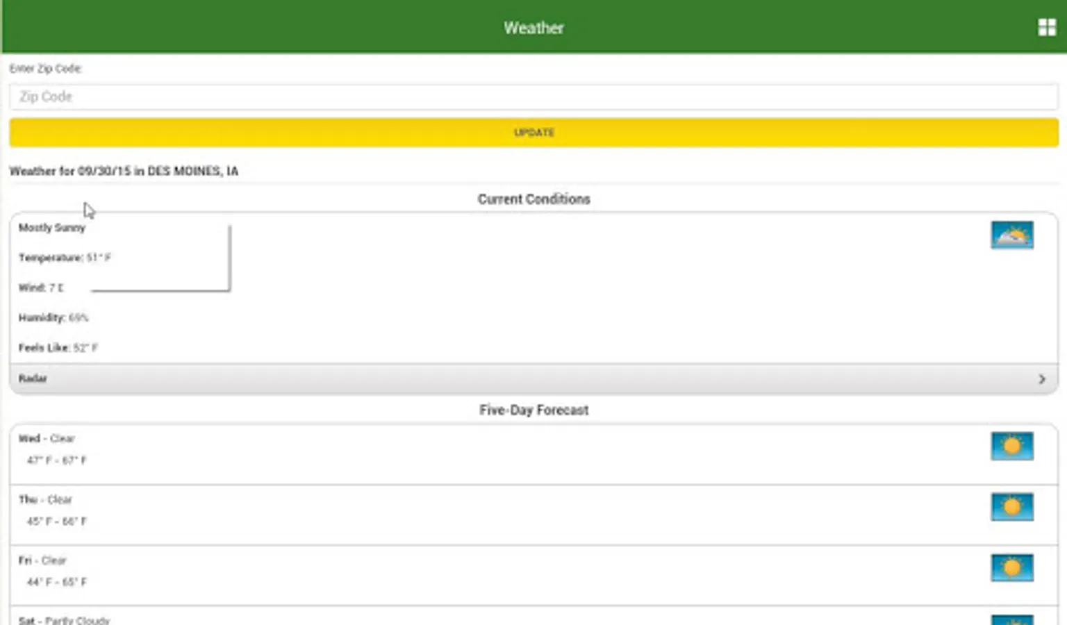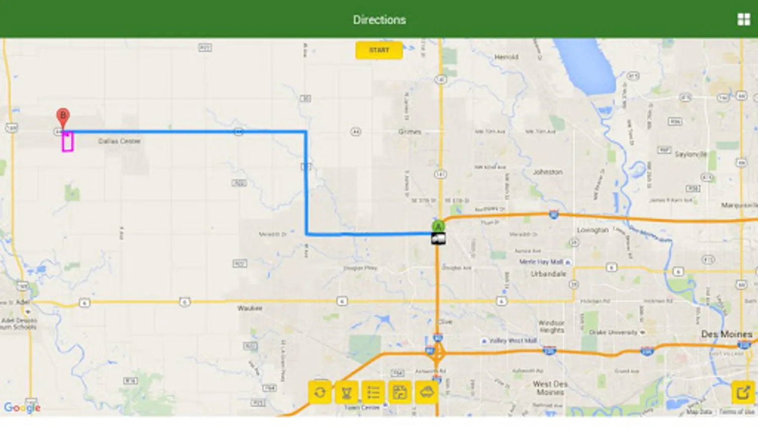 John Deere Operations Center™ PRO Tender app provides a logistics solution for your tender drivers. The PRO Tender app is designed to connect with both Operations Center PRO Dispatch web application and Operations Center PRO Run mobile app to provide a complete logistic solution that is designed for the custom application industry. Tender drivers can quickly view their entire schedule for the day or easily get driving directions to their next delivery location. Updated location information is reported back to dispatch every minute to provide a current status of your entire fleet locations. The mobile app provides tender drivers with all the tools to: