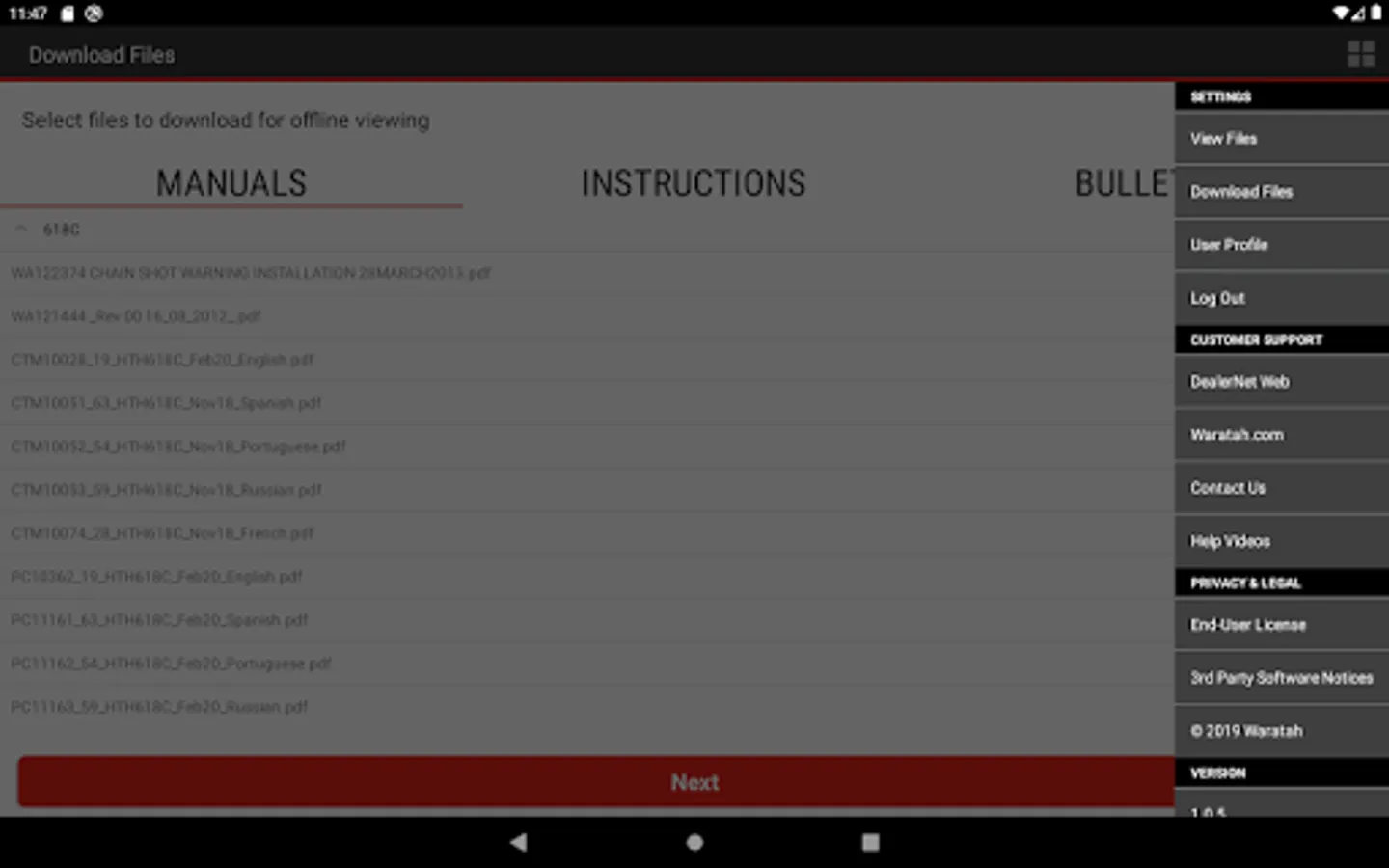 DealerNet Mobile brings the Waratah DealerNet to your pocket. Waratah Dealer Technicians can download Manuals, Instructions, and Bulletins from Waratah DealerNet to take to the job site.