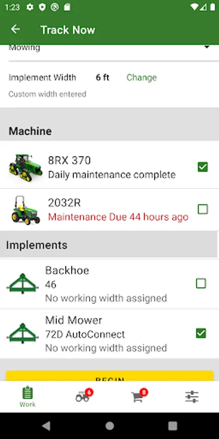 The TractorPlus app from John Deere includes exciting improvements whether you own a 1025R or 9620RX tractor. Quickly identify your equipment using the built-in barcode scanner and unlock a wealth of information and tools that help you use and maintain your equipment more efficiently. View detailed upcoming maintenance recommendations with quick access to instructions from your Operator's Manual or links to relevant tutorial videos. Get fluid capacities and parts information with options to easily purchase via an online shopping cart. Track your engine hours, record your maintenance history, and quickly link to parts diagrams when you need to identify a repair part. For Compact Utility Tractor customers there is also a new option to record and visualize work using your phone's built-in GPS and additional information when looking up diagnostic trouble codes. Browse a list of John Deere and Frontier implements compatible with your small tractor and discover great tutorial videos in the Tips Notebook.
