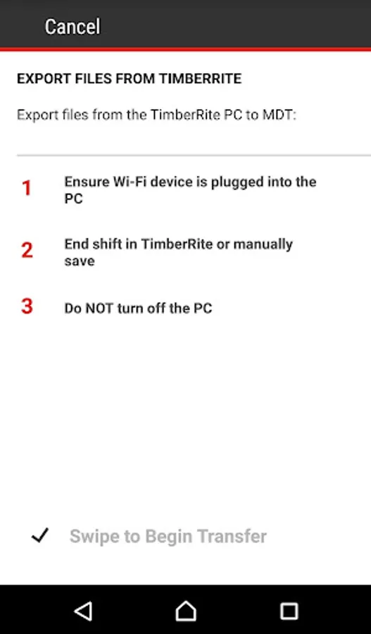 WaratahMate is designed to work with TimberRite versions 3.1.1 (H) or 1.8.8 (L) or higher and requires a WaratahMate Mobile Data Transfer (MDT) dongle, available from your local Waratah dealer.