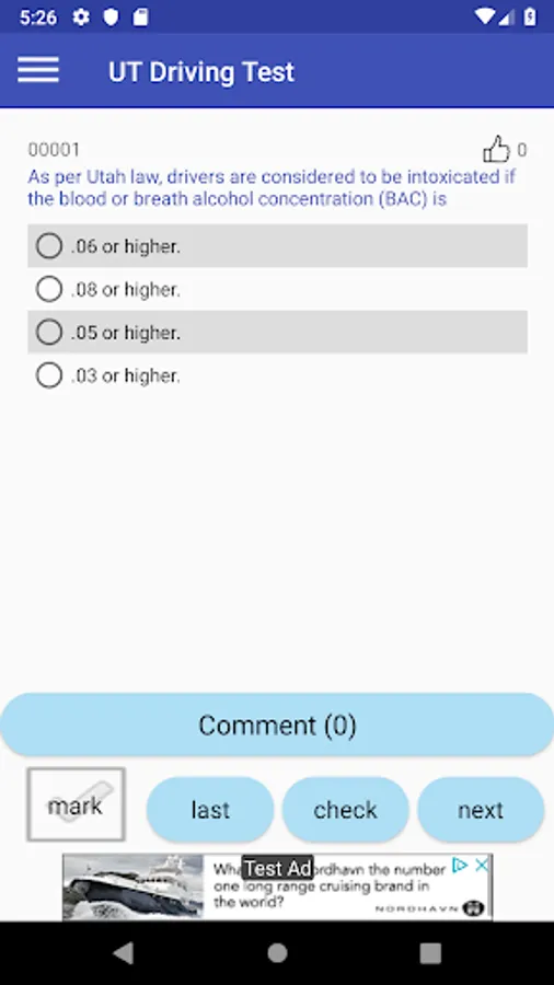 You will need to achieve an 80% passing score on a written knowledge test in order to get your learner’s permit or driver’s license in the state of Utah, by answering 40 of 50 multiple-choice questions correctly. You may apply for your learner’s permit if you are age 15 or older. If you are 17 years of age or younger, you must have your learner’s permit for at least six months before you can apply for a regular driver’s license. Anyone with a learner’s permit who is between the ages of 15 and 18 is required to take a driver’s education course. If you are 19 years of age or older, you can either skip a driver’s education course and be required to hold your learner’s permit for at least 90 days or take the course and the 90-day requirement is waived. The fee for a learner’s permit is $19, and you may renew is by paying another $19 and reapplying. Just like the real test, the questions on this Utah DMV permit practice test app are based on the 2022 Utah Driver Handbook.