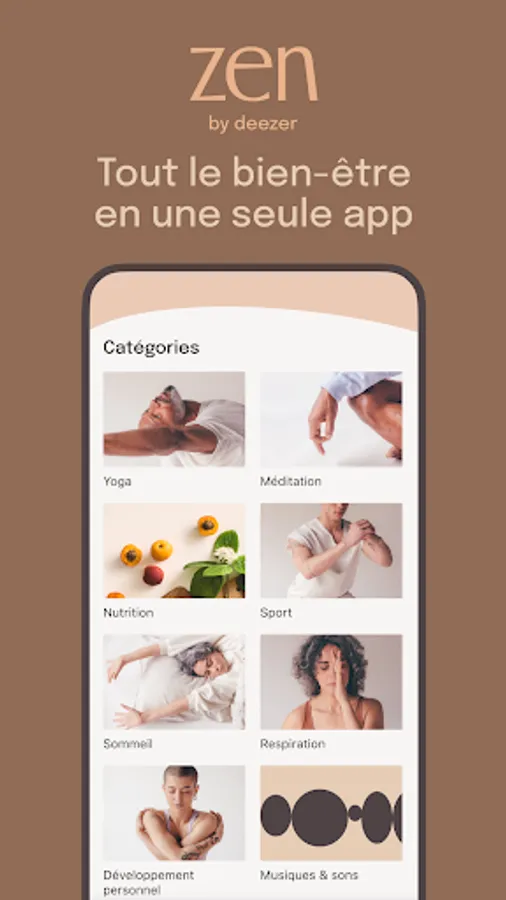 With content for sleep, relaxation, meditation, nutrition, personal development, yoga, Pilates, fitness and more, Zen by Deezer adapts to your needs, to offer you a well-being experience. unique.