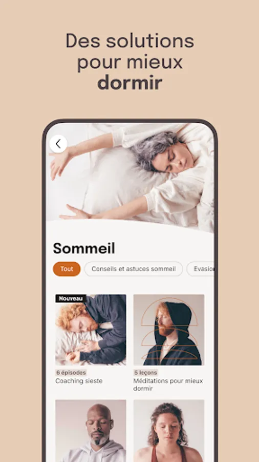 Also explore our entire catalog and find all the content offered such as relaxation to find sleep, yoga, mediation courses, breathing to find heart coherence, sport and advice on nutrition and personal development.