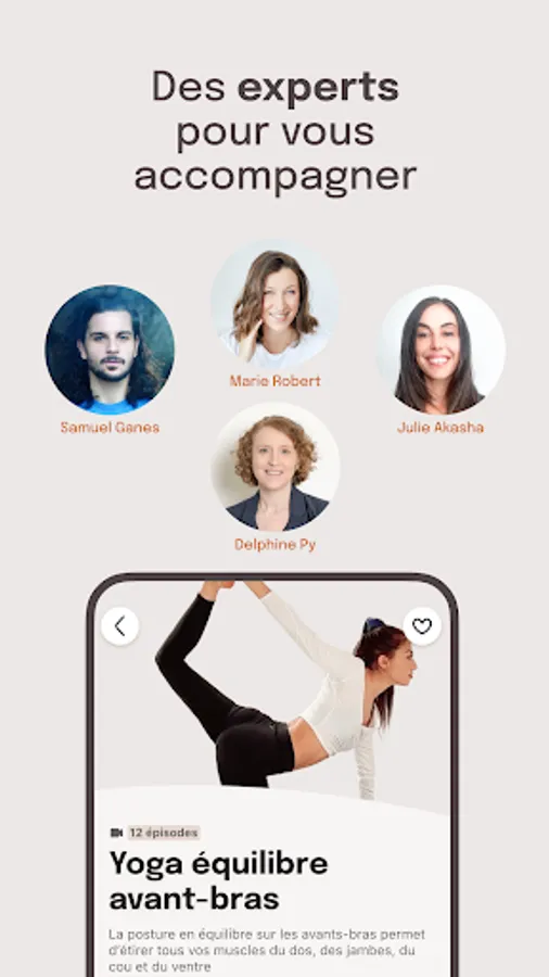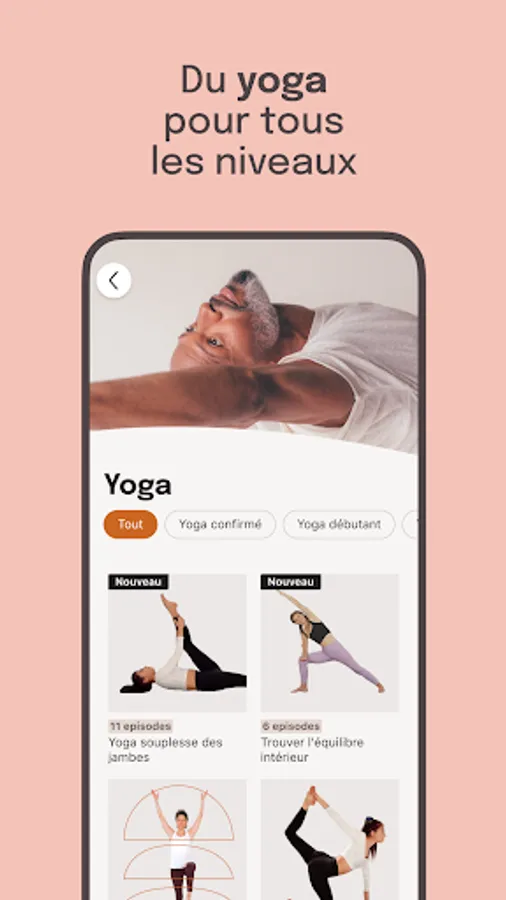 Enjoy online yoga classes for all levels. Whether for the morning, the day, the evening or for specific themes such as flexibility or the chakras, explore the large catalog and all the yoga content of Zen by Deezer and choose what suits you best.