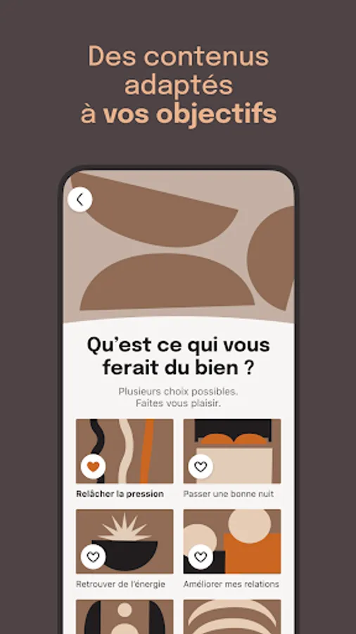 - Explore a large catalog and have content recommendations according to your objectives (sleep, concentration, relaxation, etc.).
