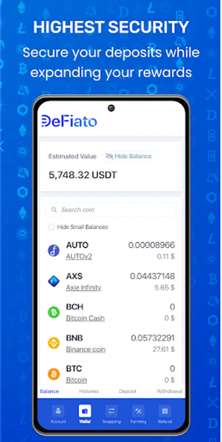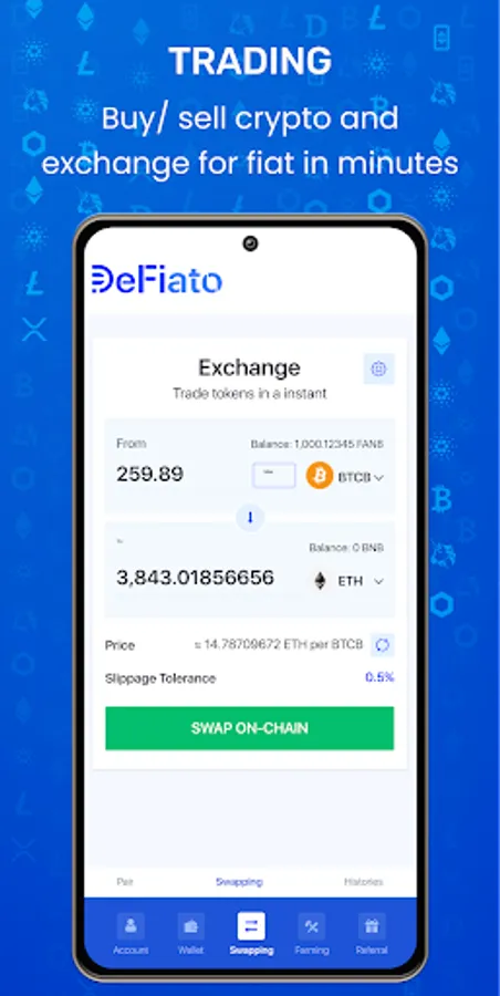 We enable users to trade crypto assets directly with the DeFiato platform, with options to instantly buy/sell crypto, or exchange them for fiat money.